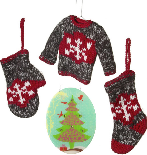 + Knit ornament mitten, shirt, stocking $13.95 CAD