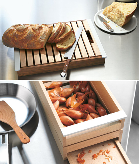 But then, I saw the wood kitchen accessories made by Bulthaup. I never took the time to look closely at their line. From the bulthaup woven maple frame basket, to the new bulthaup bread board and the bread container up to wooden containers that fit into bulthaup pull-outs and drawers.