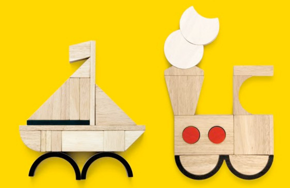 The 74 rubber wood blocks are cut in smooth, subtly painted shapes. Kids and adults will be able to draw fun faces, fashion animals or illustrate moving objects. You will find a set of illustrations and the unbleached cotton drawstring bag inside the packaged box. Miller Goodman maintains a Flickr group to bring you more inspirations about what you can do with PlayShapes. The carrying bag is cute and simple.