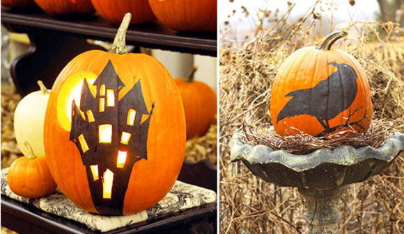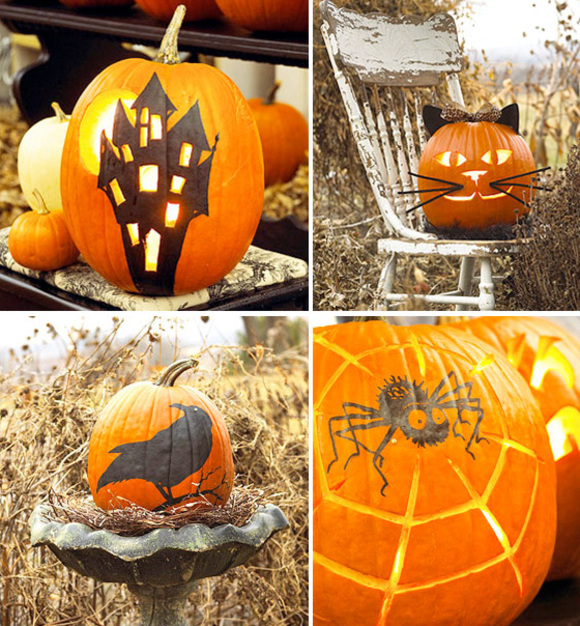I selected on Better Homes and Gardens 4 pumpkin decorating projects that anyone could do it without passing all day on the project. These cute pumpkins will not give nightmares to young kids. If you put your painted pumpkins outside, apply a varnish to protect the painted silhouette from the outdoor elements.