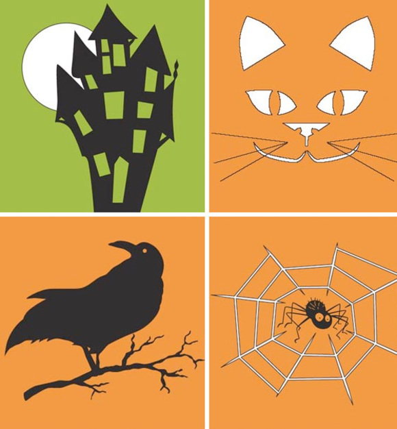 What you need our a few printable carving templates and stencils. You do not have to carve the pumpkins, you can simply paint a silhouette or do both.Then, you create a vignette to give life to your theme.