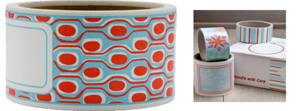A simple way to enhance mailing boxes or solid color bags during the Holiday is by adding a decorative tape. Envelop wrap around labels could be used as gift tags or to send your Holiday cards.