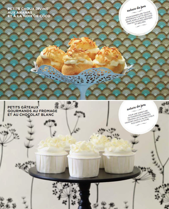 Start collecting bold wallpapers, fabric coupons, and gift wrapping papers to create your backdrop scene. The stylist for Le Lait calendar was not afraid to opposite modern patterns to traditional plates and utensils.