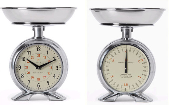 I like to browse their catalogue from time to time to discover what I consider to be the most interesting items. Bengt Ek Design designed a superb aluminum kitchen scale that show a clock on one side and a graduated dial on the other.