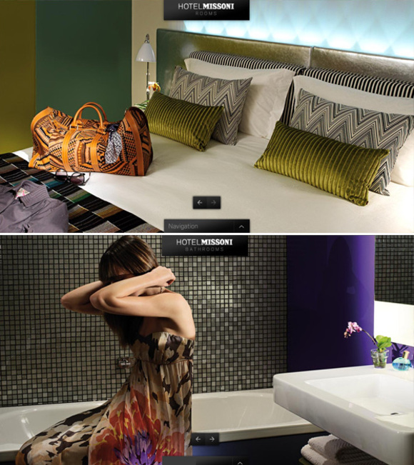 As you would expect, the room decor is inspired by Missoni’s line of fabric. Although I do not like all their room decor, I find that some of are well-done. I wish to share my favorite ones with you. The secret is often to use solid colors taken from the bold pattern palette. You do not wish to add new colors. Then, you can oppose textures and finishes (ex: mat vs shiny).