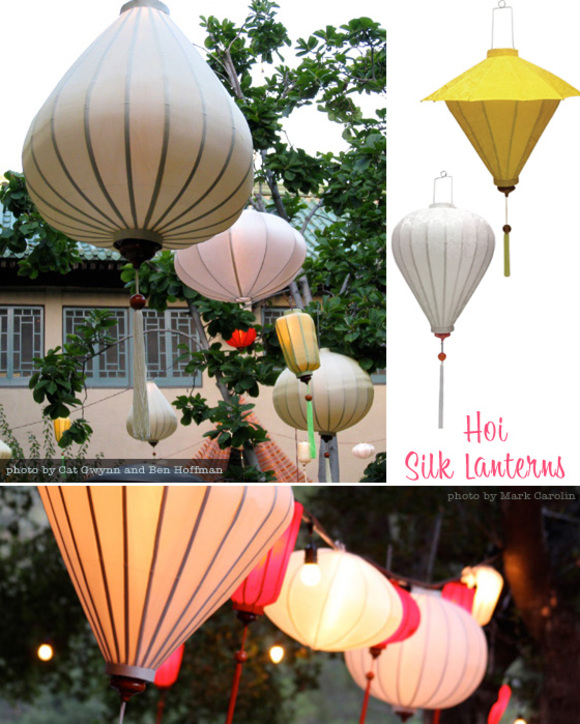 Inspired by the fabulous work of LA-based event design Flite, I examined how to best use silk lanterns in a garden party to get a stunning effect. It starts with the superb Vietnamese silk lanterns, which are a lot more sophisticated than Chinese paper lanterns.
