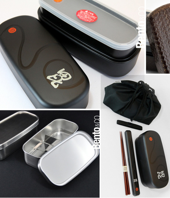 Bento & Co proposes stylish masculine boxes. Select from the professional-grade stainless steel Zen boxes or the classic black boxes. The elegant fake-wood boxes go inside the microwave and are dishwasher safe.
