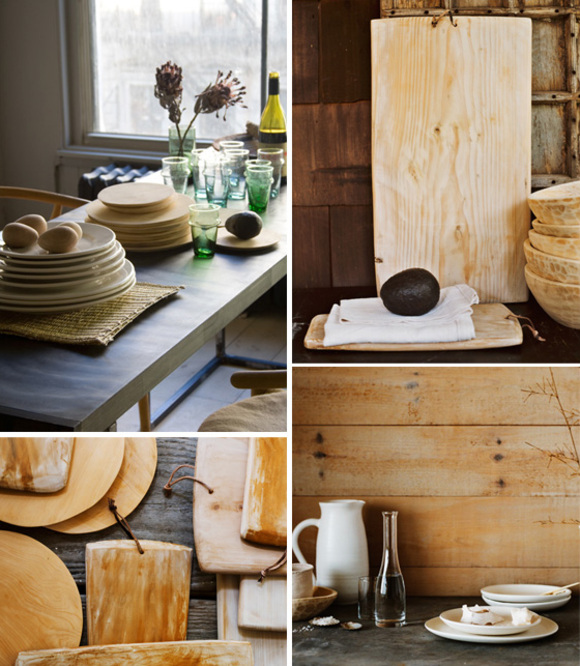 The Bistroware ceramic dinnerware collection is elegant and simple. I read on Remodelista that the plates vary from $15 to $20 each. The Moroccan recycled glasses ($11-$15) are original. I would like to own a bunch of round cedar boards ($32-$38) to use as serving trays.