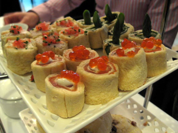We started with elegant sandwich rolls. They look so much more elegant than basic triangles. They served us three delicious sandwiches: