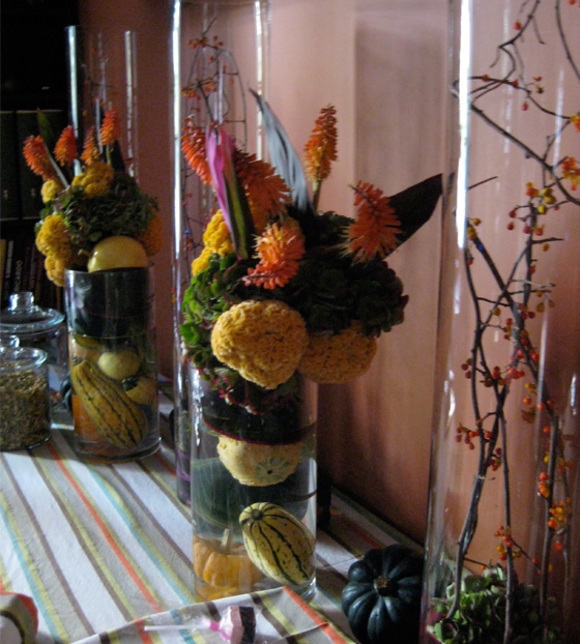 The 5 floral arrangements they created for the party were fabulous. They captured the masculine elegant mood I was aiming for. Plus, they played with heights and volume in a way that suited the architecture of the room and the needs of my dessert table.