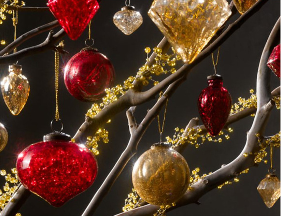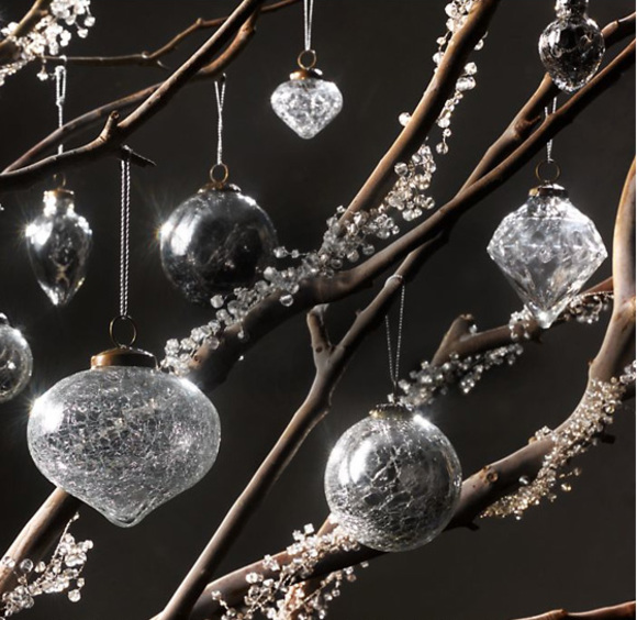 Available in silver or in smoke, the Victorian style handblown tree ornaments fit well into the glamorous feel of the 2009 Christmas. Crackling or diamond faceting on every ornament produces light-catching sparkle. Plus, an antiqued-brass cap adds an authentic finishing touch. Their price is already slightly reduced.